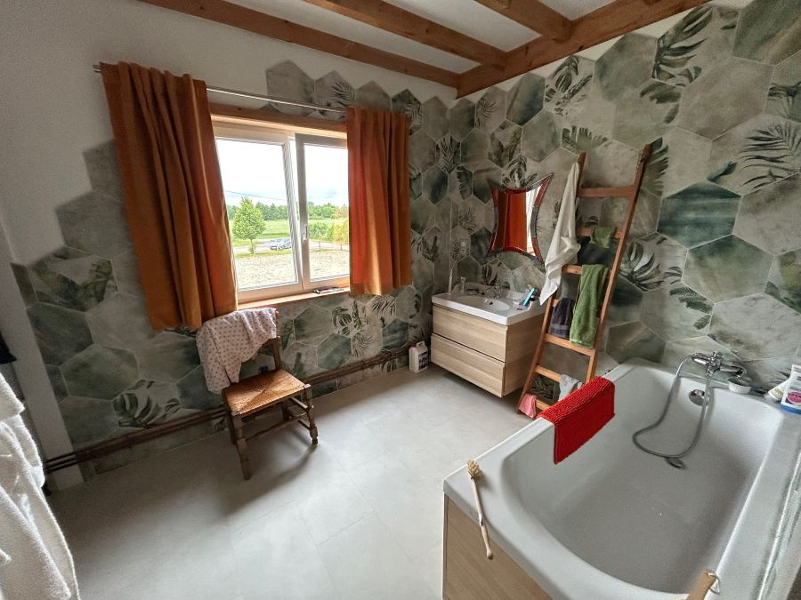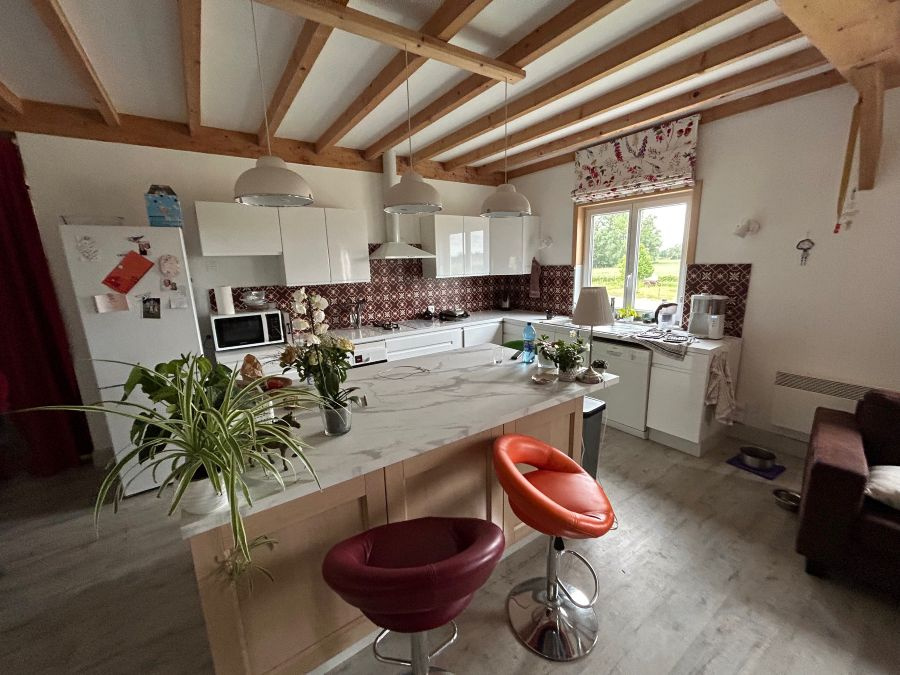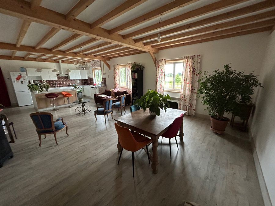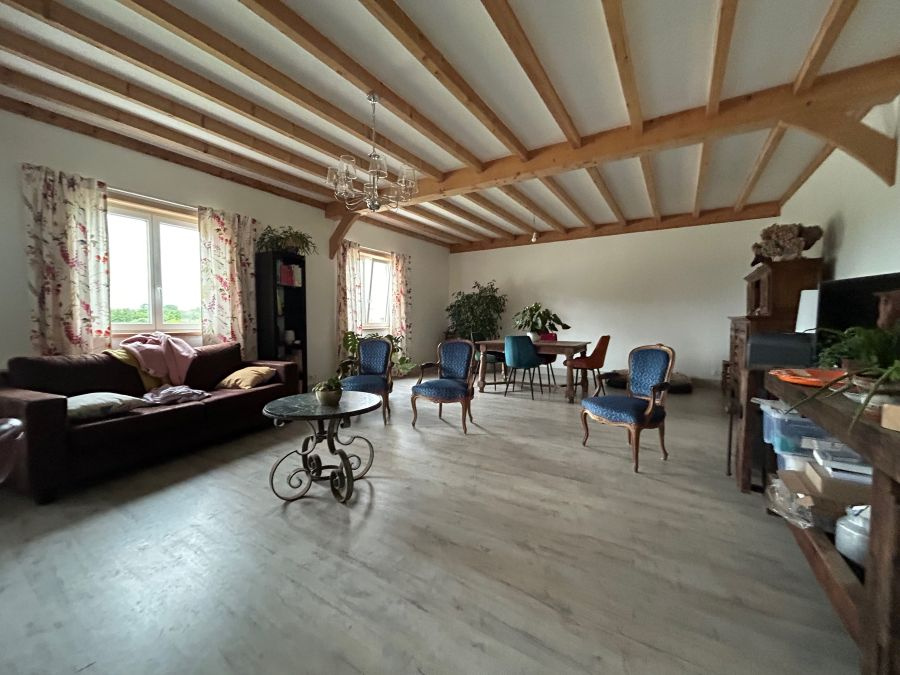 - A l'étage : appartement T4 de 129m2 en très bon état avec vue sur le manège et la carrière. Chauffage électrique, double vitrage, micro station d'épuration.