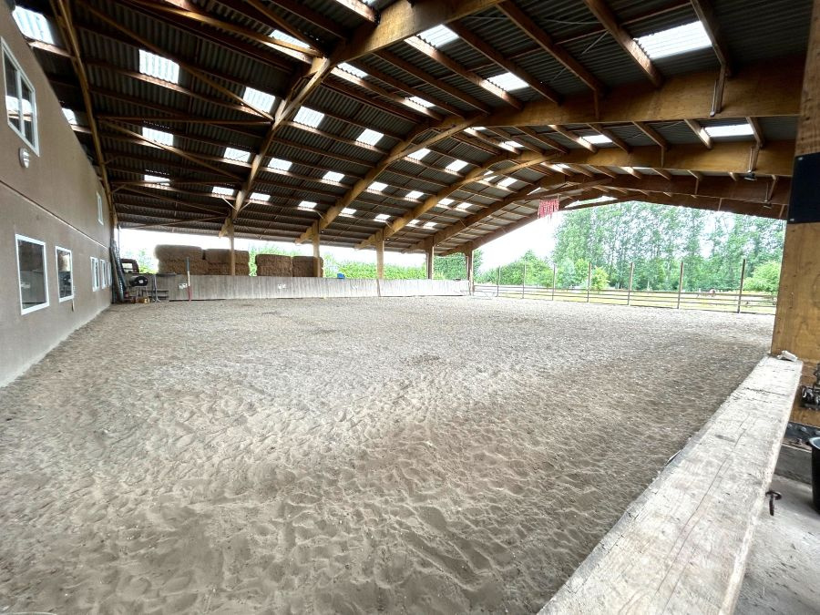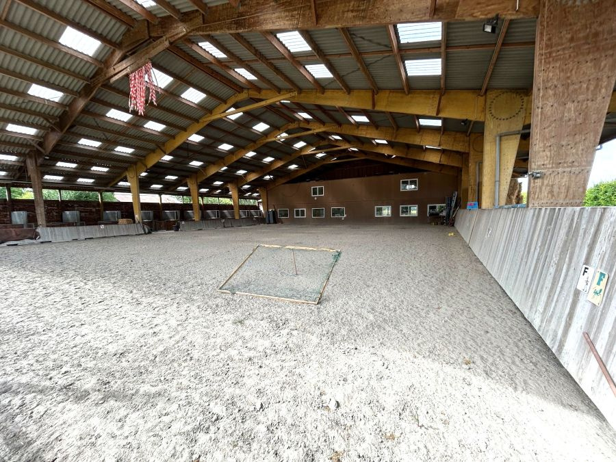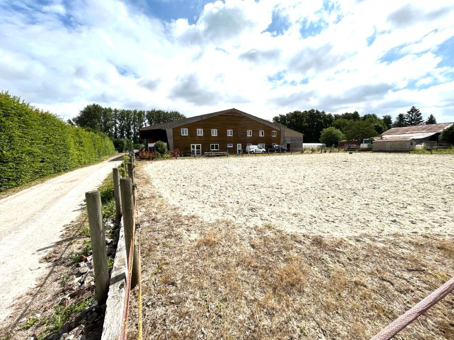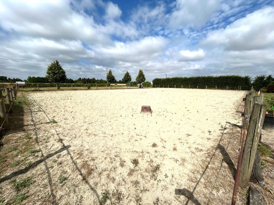 Concernant l'installation équestre : manège couvert semi-ouvert de 24m par 30m, carrière extérieure de 25m par 40m, grand parking, nombreuses prairies, 12 boxes de 3,5m par 3m avec cloisons coulissantes, donnant sur le manège avec abreuvoirs automatiques, espace de stockage couvert semi-ouvert pour le foin et les machines. Forage, fumière, grand parking. A visiter ! Beau potentiel ! Rare sur le secteur !!