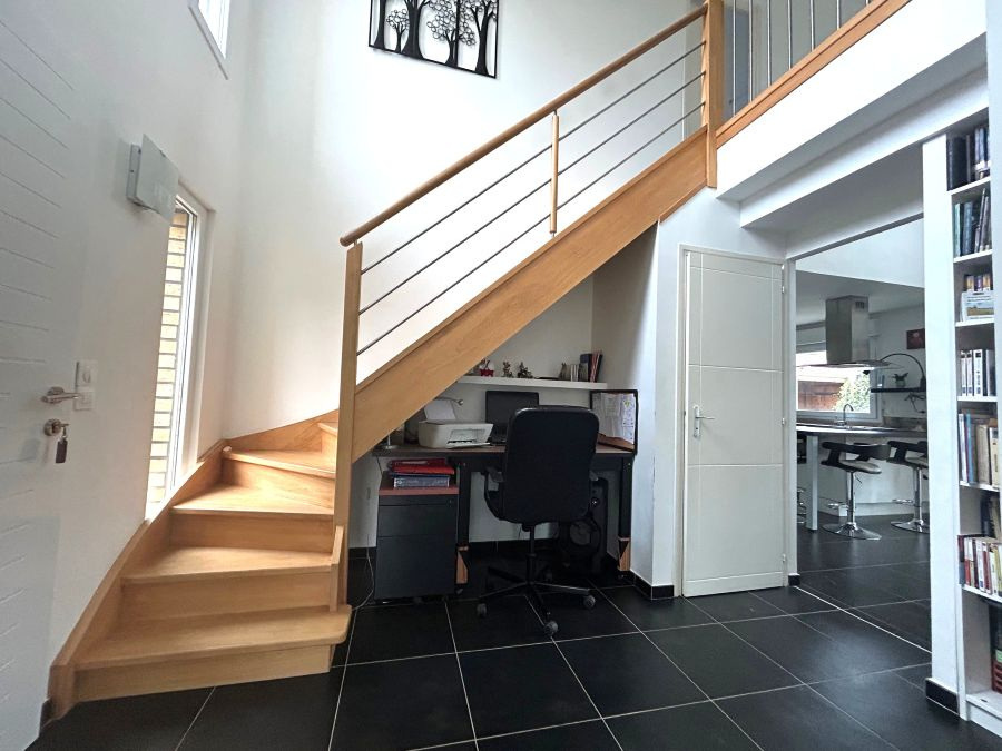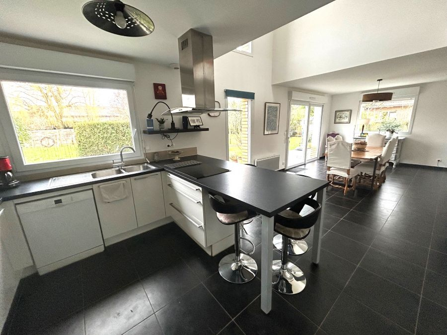 Situé en retrait de rue et au calme, en belle campagne amandinoise, très bon état pour ce pavillon contemporain R+1 de 2012 construit par maison CASTEL, développant 115m2 de superficie habitable et bâti sur 708m2 de terrain exposé SUD/OUEST. Comprenant : entrée cathédrale ouverte sur la pièce de vie baignée de lumière, espace bureau sous l'escalier, WC, salon ouvert sur le séjour (cathédrale également) lui même ouvert sur la cuisine équipée coin repas, pour une surface totale de 55m2 environ, cellier/buanderie avec accès extérieur. A l'étage : couloir, suite parentale comprenant chambre, dressing et salle de douche. Deux chambres supplémentaires dont une plus petite, salle de bains. Chauffage électrique, double vitrage PVC, volets roulants manuels, ADSL. A l'extérieur : parking trois voitures, jardin clos et arboré, terrasse spacieuse, 3 abris de jardin, espace potager !! A visiter !!