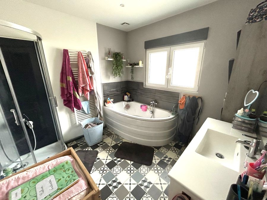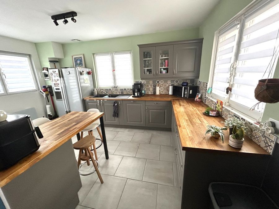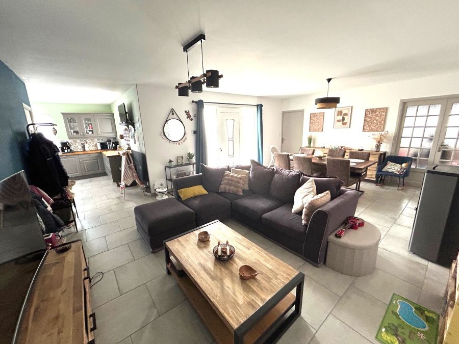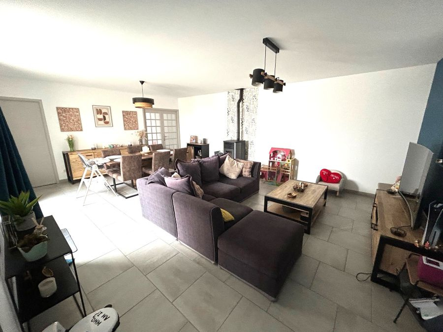 Situé dans un secteur prisé, proche des commodités, excellent état pour ce plain-pied des années 70 entièrement rénové, développant 95m2 et bâti sur 1165m2 de terrain clos. Comprenant : belle pièce de vie avec poêle à pellets, ouverte sur la cuisine équipée coin repas donnant sur le jardin. Couloir, WC, buanderie, salle de bains avec baignoire, douche et vasque. Coin nuit composé de : dégagement, 3 chambres dont une plus petite. Chauffage : pellets + électrique, tout à l'égout, double vitrage PVC bicolore, volets motorisés dans les chambres et la salle de bains, fibre optique. A l'extérieur ; passage côté, parking 4 véhicules, portail motorisé, terrasse, jardin clos en deux parties. Bâtiment supplémentaire indépendant à rénover comprenant : garage de 31,66m2 + 30m2 non exploités servant de dépendance : possibilité, gite, studio, profession libérale ou idéal atelier pour artisan etc... Beau potentiel !! A visiter !