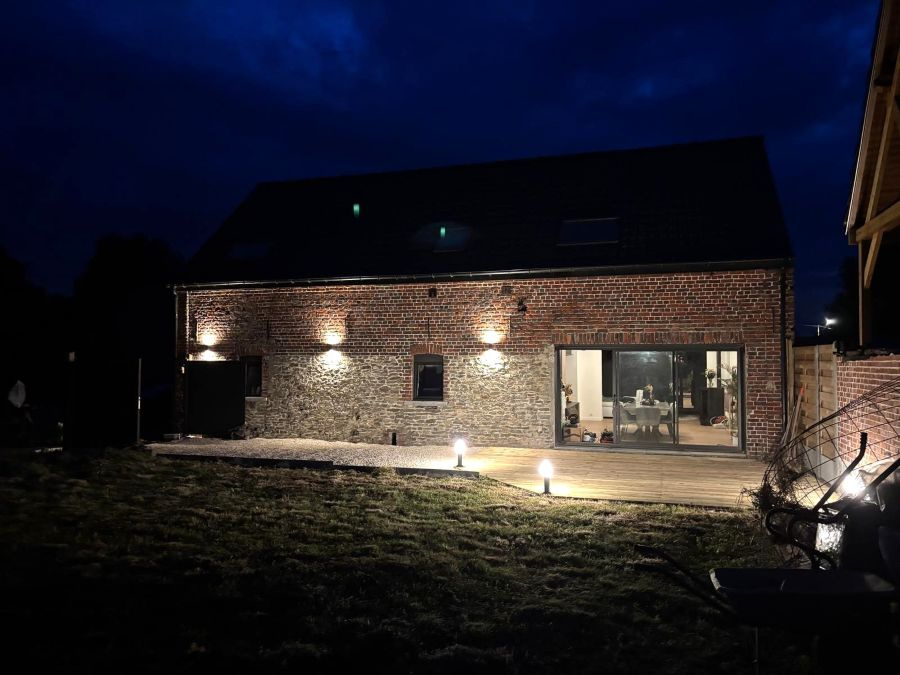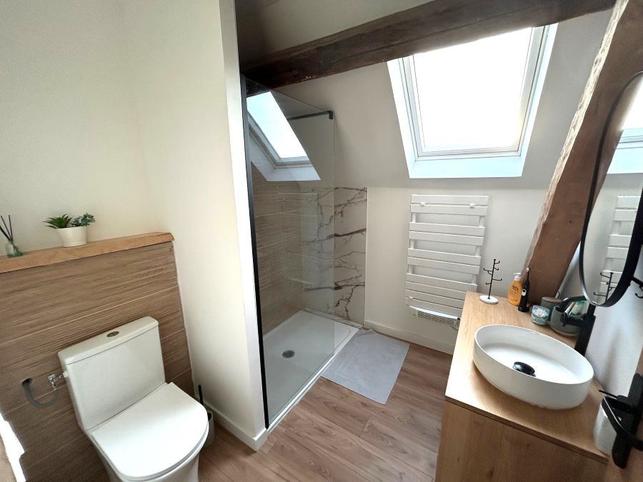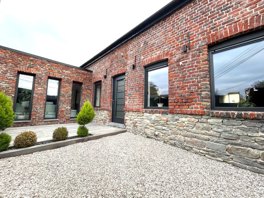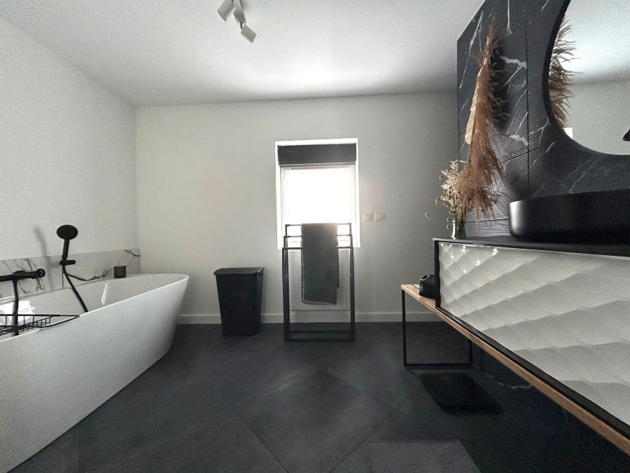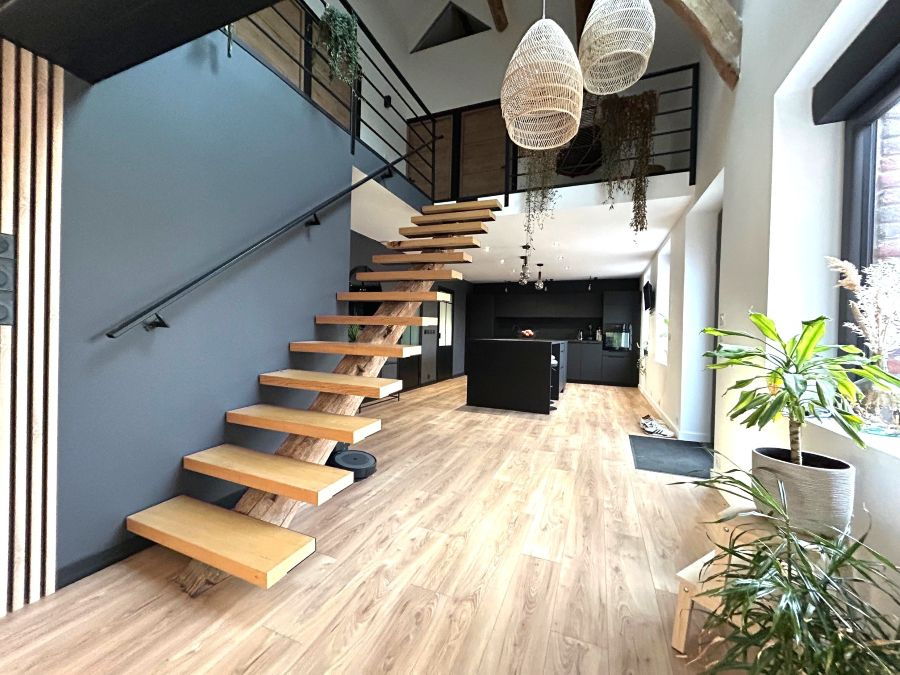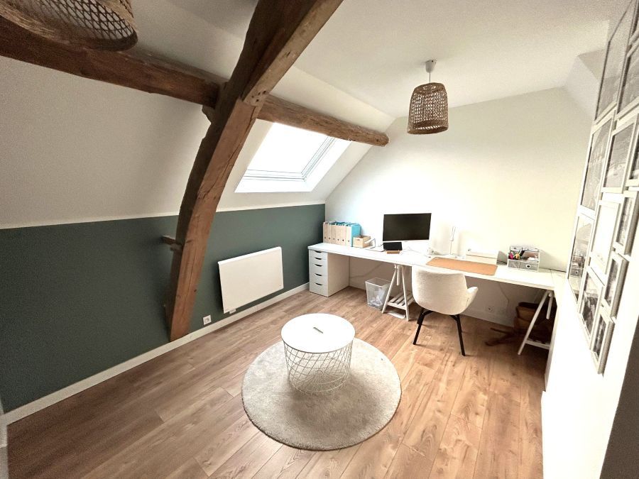 Située en campagne amandinoise, belles prestations et rénovation de qualité pour cette longère individuelle de 178m2 de superficie habitable bâtie sur une parcelle de 404m2. Comprenant : hall d'entrée cathédrale ouvert sur la cuisine équipée avec ilot central (Cuisinella Belgique) elle même ouverte sur une grande pièce de vie lumineuse avec baie vitrée de plus de 4m donnant sur le jardin, le tout pour une superficie totale de 70m2 environ, poêle à pellets 15KW . Cellier/buanderie avec rangements aménagés, cave de 8,6m2, salle de bains avec baignoire ilot, meuble vasque et grande douche italienne. WC séparés. A l'étage : palier en mezzanine possibilité espace bureau, salle de douche avec vasque et WC, chambre avec espace mezzanine (couchette ou rangements sous la charpente), seconde chambre, dressing aménagé, grande chambre parentale de 31m2 avec espace dressing et hauteur cathédrale. Chauffage électrique + pellets, VMC double flux, double vitrage alu noir sablé, volets roulants électriques, tout à l'égout, fibre optique. A l'extérieur : 2 terrasses, une à l'EST et une à L'OUEST, cour sur l'avant, jardin clos sur l'arrière, accès véhicule, 2 places de parking. A visiter, beaucoup de charme et de cachet, décoration soignée !!